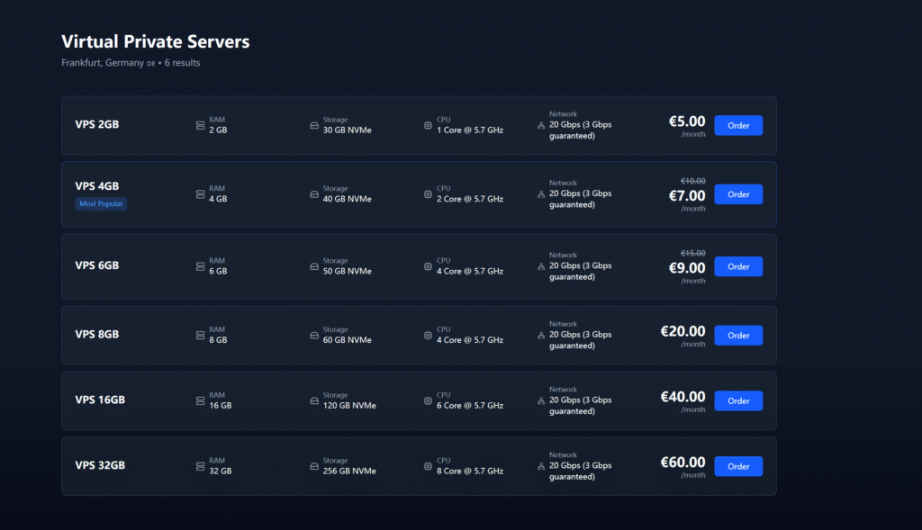 Takehost是挪威的一个冷门灵车商家(谨慎购买,大概率以前跑路商家换皮),基本没看到过评测,德国的性价比不错,20gbps带宽,CPU是9950X,独立核心,可以跑满
